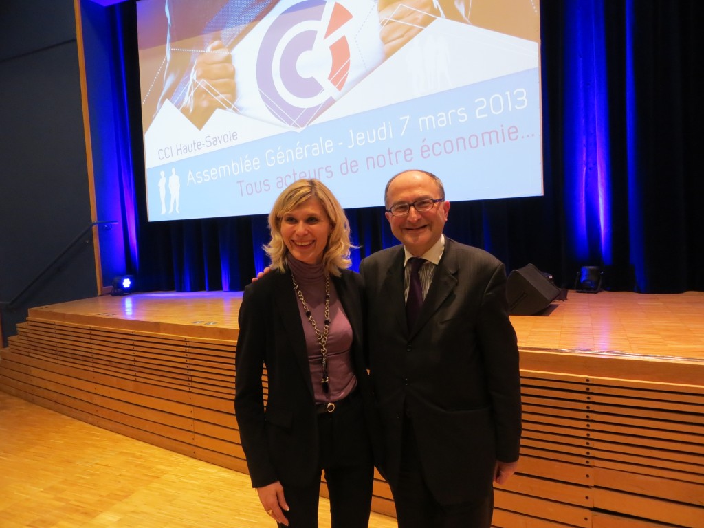 Virginie DUBY-MULLER a assistĂ© Ă  l’AssemblĂ©e gĂ©nĂ©rale de la CCI de la Haute-Savoie avec pour thème « Mais oĂą va notre Ă©conomie ? ». Après le discours de Guy MĂ©tral, PrĂ©sident de la CCI 74, une table-ronde de dirigeants du dĂ©partement a Ă©tĂ© proposĂ© sur le thème « Les entreprises du territoire aujourd’hui… et demain ». Enfin, Christian de Boissieu, Ă©conomiste de renom, spĂ©cialiste des questions monĂ©taires et bancaires, est intervenu pour faire part de son analyse et de ses perspectives pour 2013.