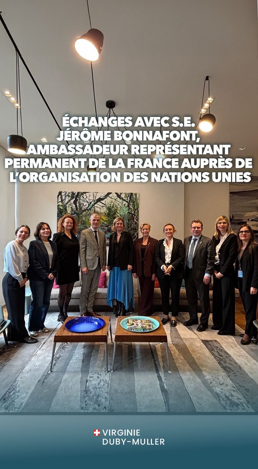 À la Mission permanente de la France auprès des Nations unies, nous avons échangé avec plusieurs délégations parlementaires (italienne, britannique et européenne) ainsi qu’avec des représentants de la société civile. J’ai également eu l’honneur de rencontrer Malala Yousafzai, prix Nobel de la paix 2014, engagée dans une campagne internationale visant à faire reconnaître l’apartheid de genre en Afghanistan.